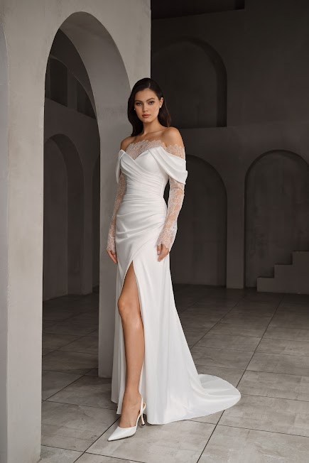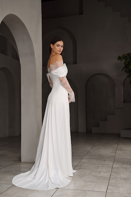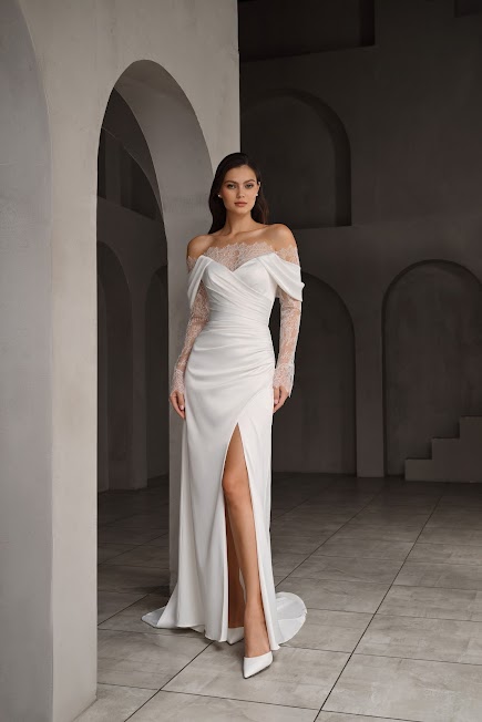 Для невесты, которая ценит смелость и элегантность. Данная модель - идеальный баланс между дерзким современным дизайном и вечной классикой. Оно подчеркивает вашу женственность и позволит почувствовать себя уверенной и неотразимой.