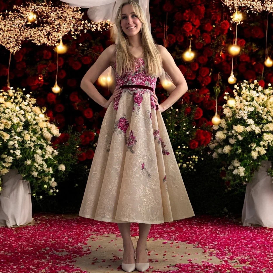 Романтичное миди-платье Teresa с цветочным принтом и ручной вышивкой — изысканный выбор для мамы невесты и подружек в Москве!