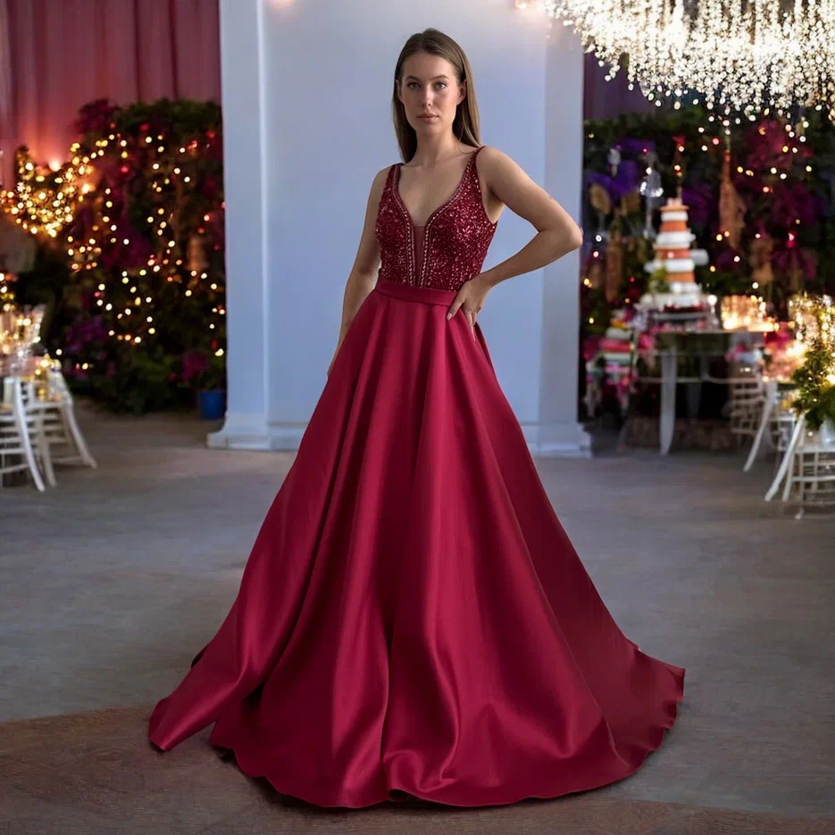 Роскошный вечер требует особого наряда! Это платье с пышным силуэтом и длинным шлейфом создает эффект королевского образа. Верх, усыпанный бисером, ловит каждый луч света, придавая вам сияние и изысканность. Уникальный секрет — карманы! Практичные и стильные, они позволяют держать важные мелочи под рукой. Идеально подходит для премий, гала-ужинов, закрытых вечеринок и премьер — будьте неотразимы и запоминающимися!