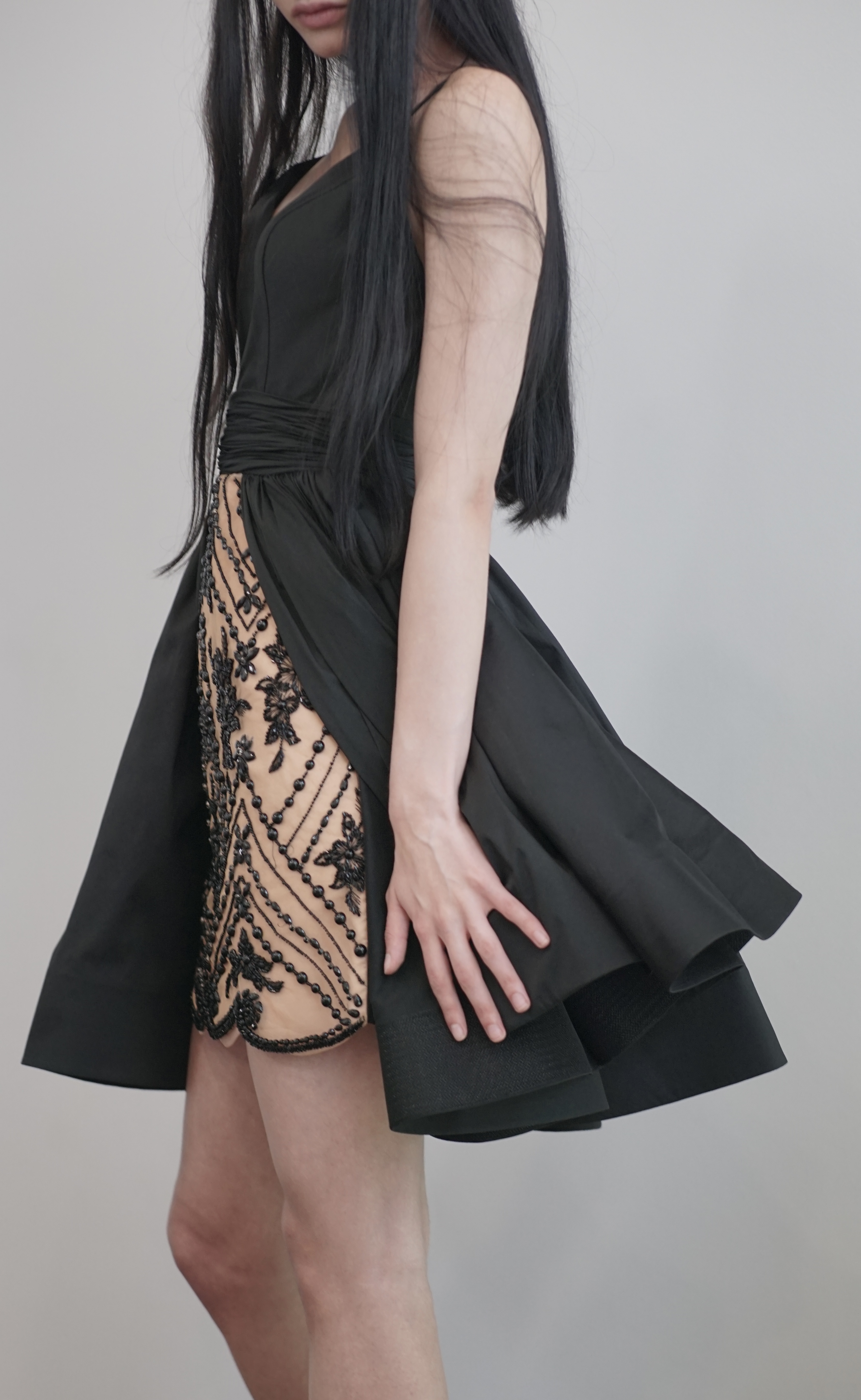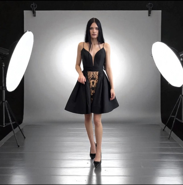 Это роскошное платье сочетает в себе элегантность и дерзость. Глубокий вырез и открытая спина подчеркивают женственность и сексуальность, а пышная юбка с изысканной отделкой придает образу величие и торжественность. Тонкие бретели добавляют легкости и утонченности, делая это платье идеальным выбором для особых случаев.