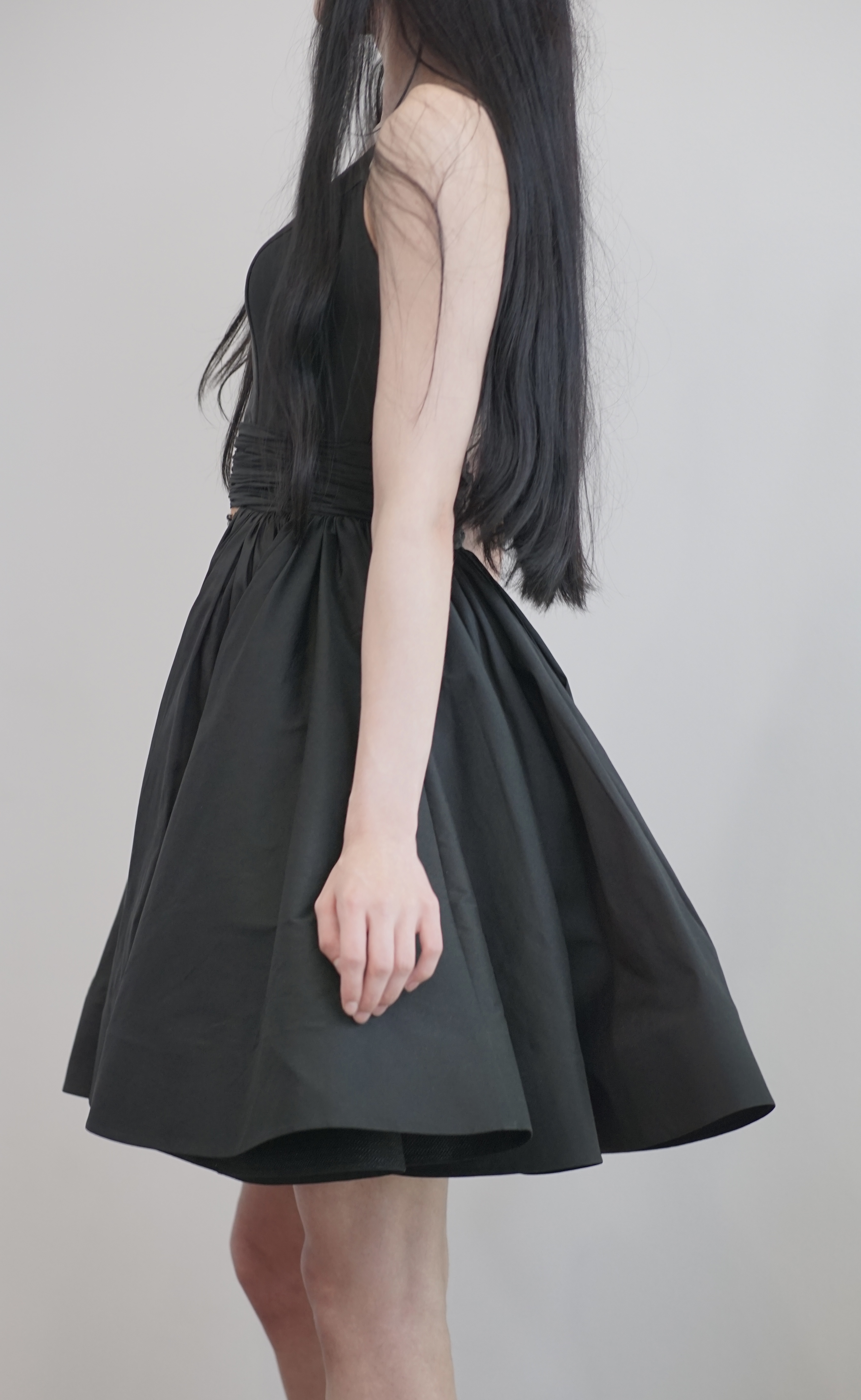Элегантное черное платье Naomi на тонких бретелях с глубоким вырезом и открытой спиной — для подружек невесты, желающих выглядеть эффектно и по-королевски в Москве!