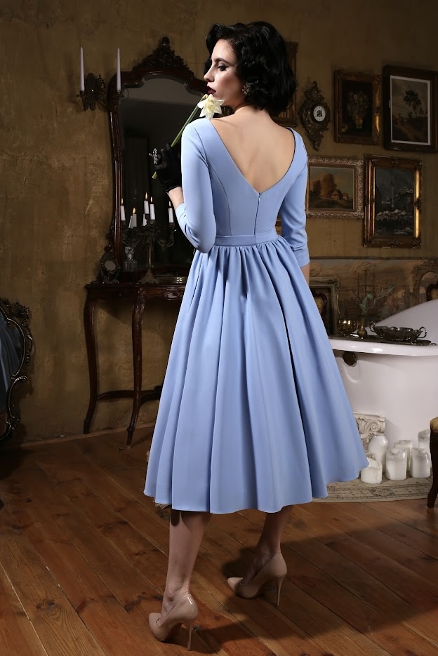 Элегантное голубое платье Margaret длины миди — свежий и универсальный образ для мамы и подружек невесты больших размеров в Москве!