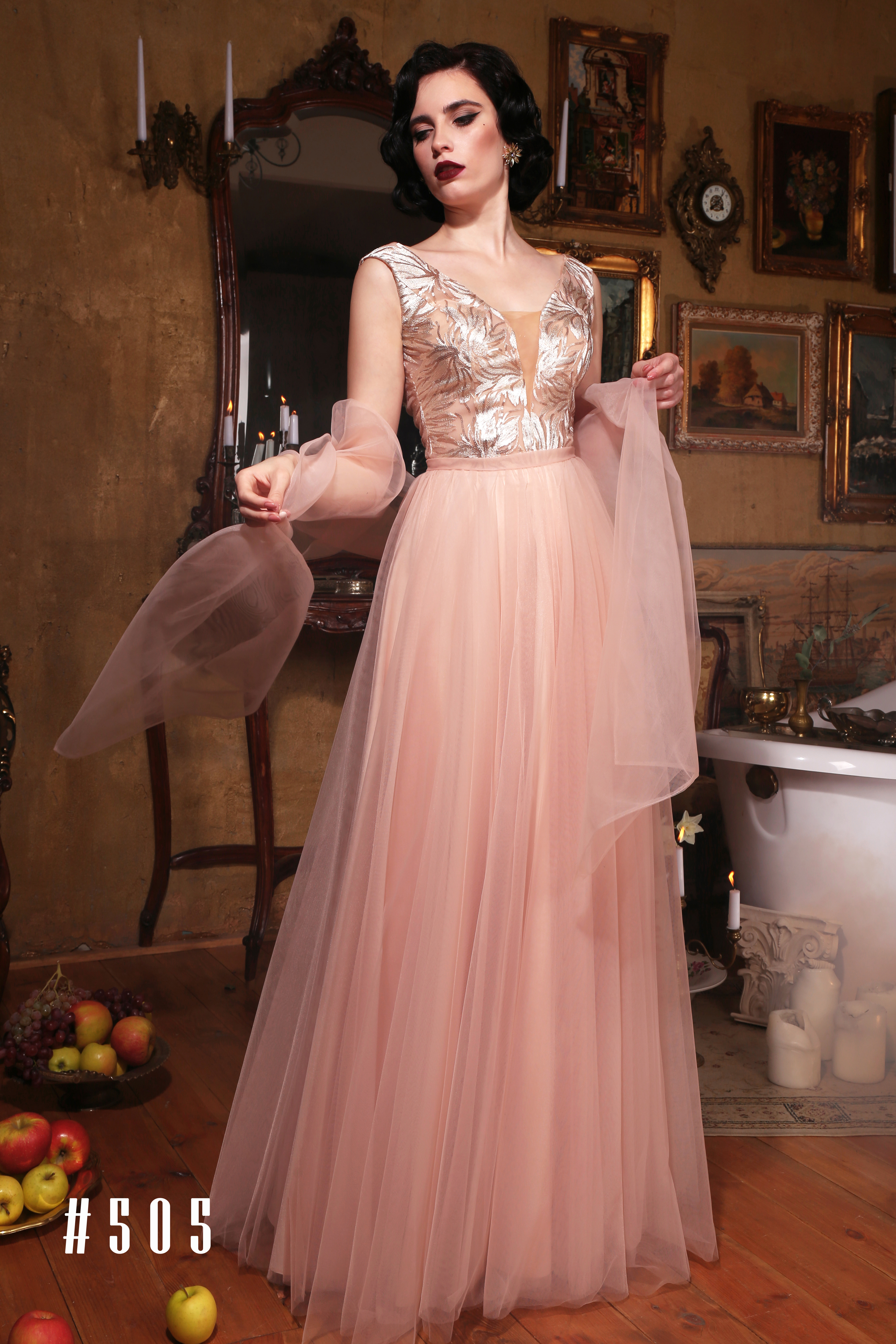 Нежное пудровое платье Viola в пол с пышной юбкой из фатина — романтичный и волшебный образ для мамы и подружек невесты в Москве!