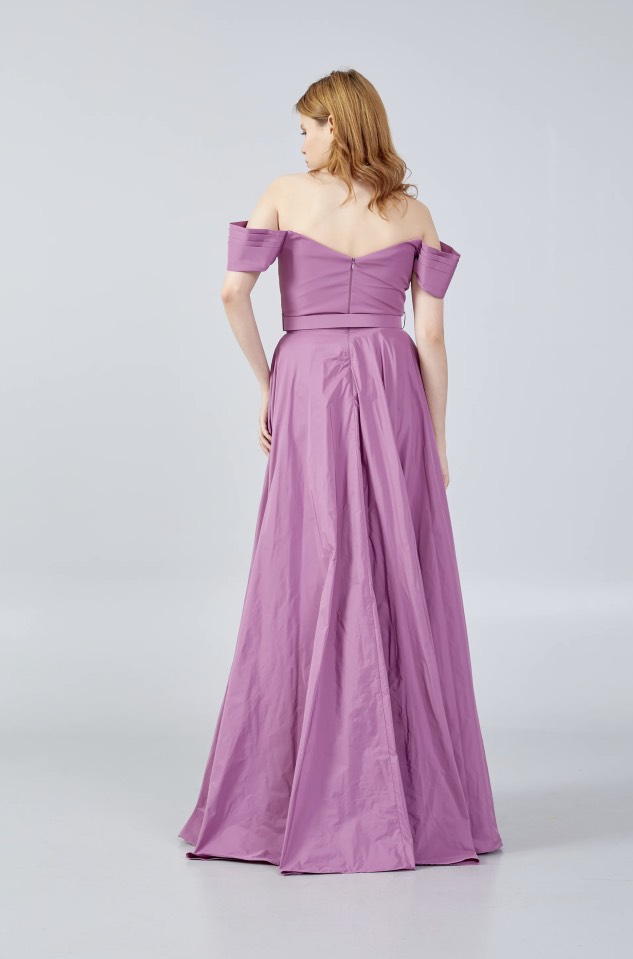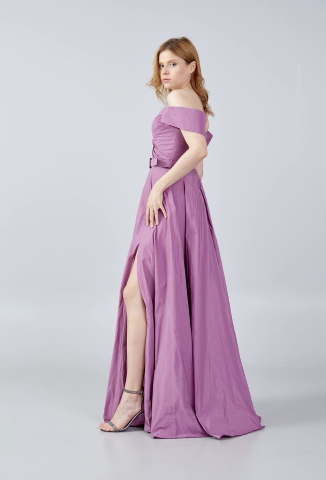 Это изысканное платье насыщенного фиолетового оттенка привлечет все взгляды. Спущенные плечи добавляют образу романтичности и нежности, подчеркивая линию декольте и создавая женственный силуэт. Тонкий пояс в тон аккуратно обозначает талию, делая образ гармоничным и элегантным без перегрузки деталей. Идеально подходит для особых случаев — свадьбы, юбилея, свидания или фотосессии — чтобы подчеркнуть вашу индивидуальность и стиль.